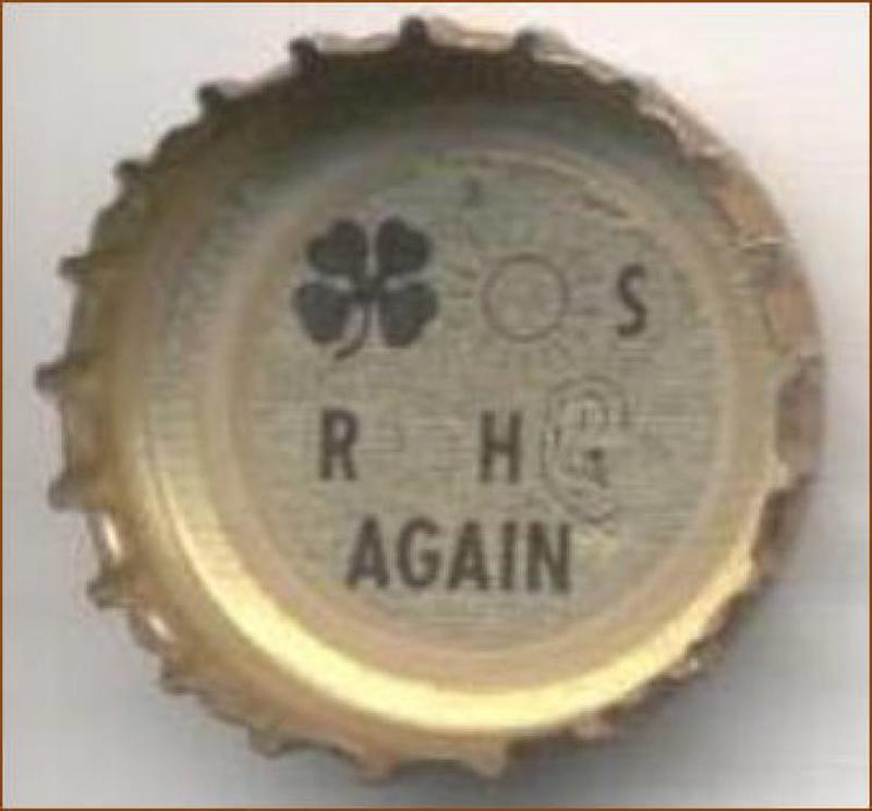 There is an important message inscribed in the cap. There is leaf clover, the sun, letter S, R and H, an ear and the word "AGAIN". So what could the artist possibly be trying to suggest in this bottlecap?