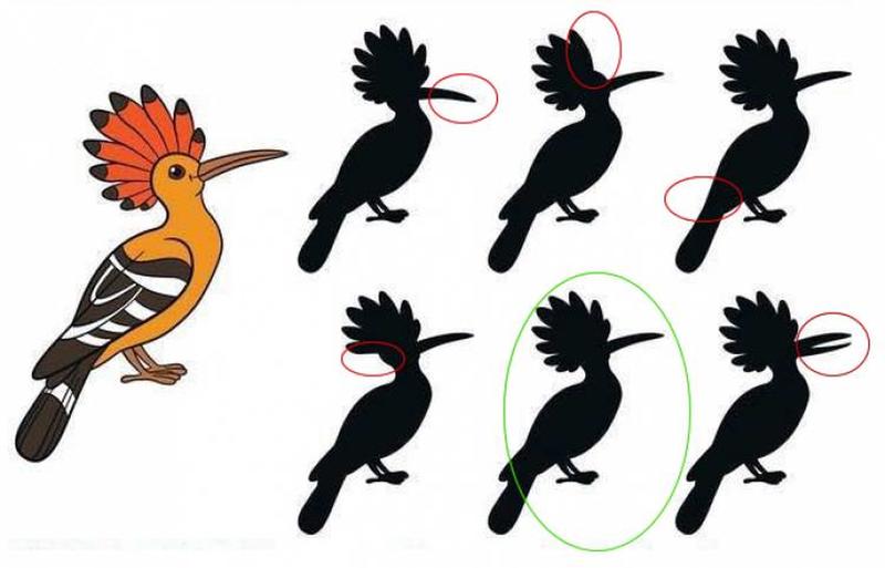 What is the correct shadow of the bird? There are many pointers which you can make use of. These include the orientation of the beaks, the spacing between the beaks and how the feathers of the bird are placed.