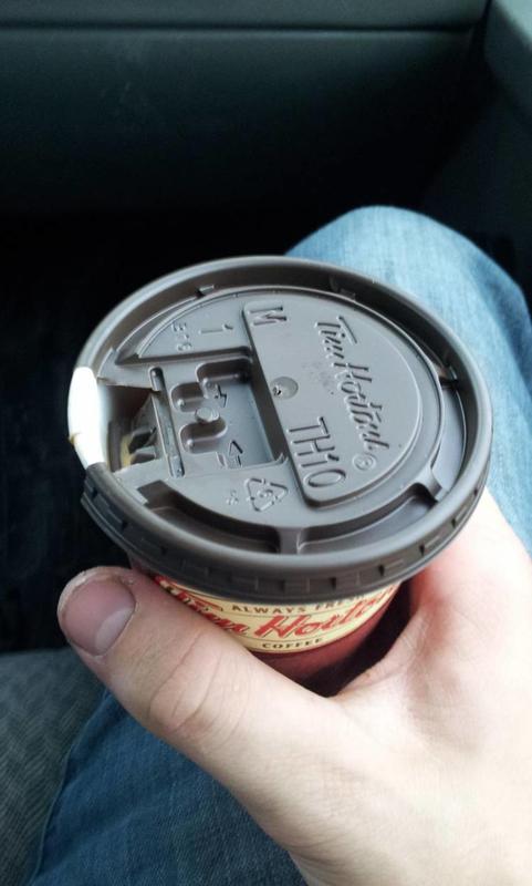 Everyone needs their pick me up in the morning before handling their business so a strong cup of coffee might be necessary for a lot of us. What many people don't realize is that the coffee cup lid features an indent for the closable coffee tab to perfectly fit in.