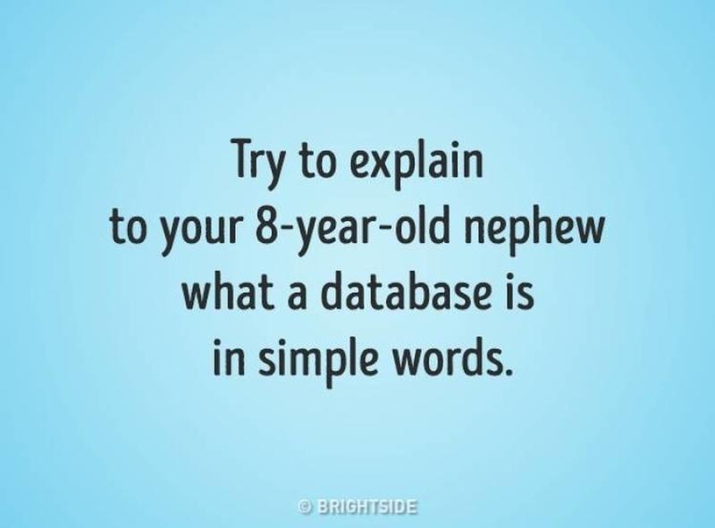 Children are young and have extremely creative minds. They tend to think outside of the box and usually don't accept straightforward answers. So you will have to add a few twists to a straightforward answer such as, "Database is a place where lots of people store their information. Now go outside and play."