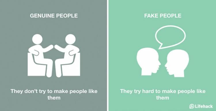 A genuine person isn't generally after superficial and pointless concepts such as recognition and acknowledgement. Fake people on the other will constantly demand your attention and affirmation of their superiority - of course whether they have superiority or not is a different matter.