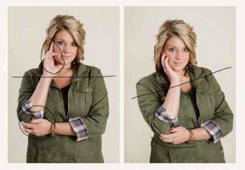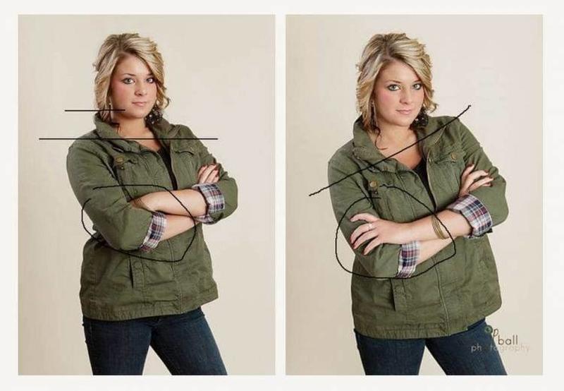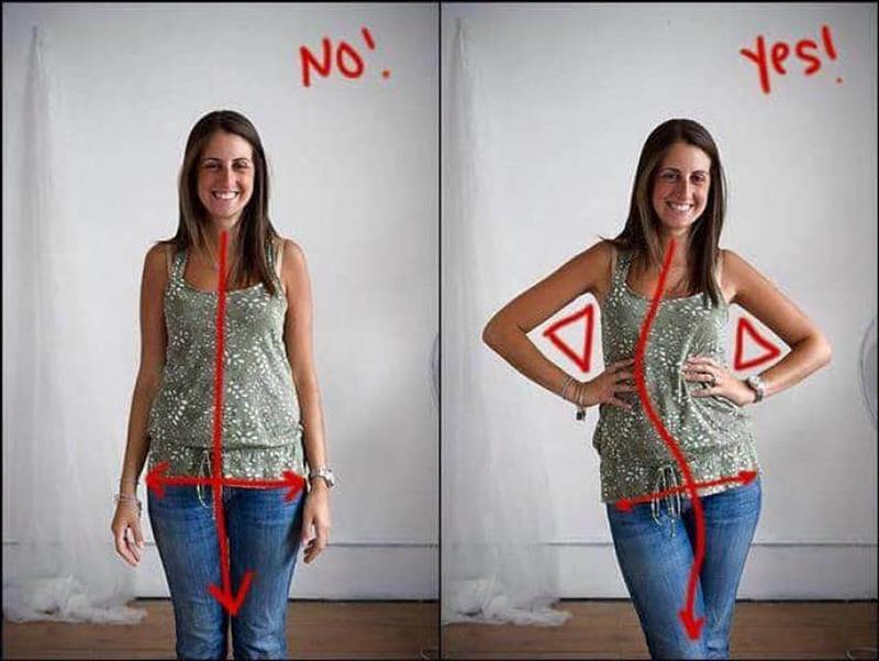 When you're posing with your arms to the camera then it is important that you create separation between your arms and your body considering that clamped arms can look fat and uninspiring. Here is an illustration of why you should maintain the distance.