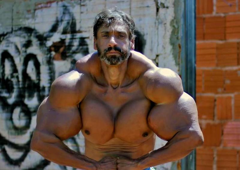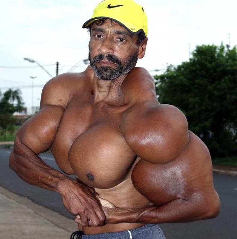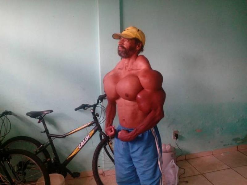 His biceps and shoulder muscles quickly bloated in size. You can observe how disproportionate they are to the rest of his body - but Valdir doesn't mind and is deluded by what he thinks is the perfect appearance. He wanted to grow even more unnaturally big.