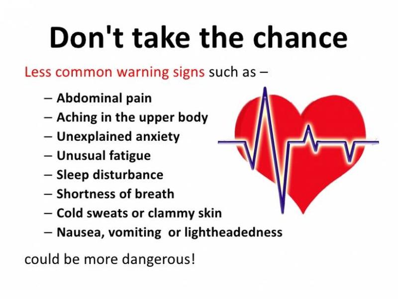 One of the first symptoms most doctors talk about as a precursor to a heart attack is feeling like you are having the flu or the common cold. This is especially true if the symptoms come and go over a longer period of time - usually over 3 to 6 months.