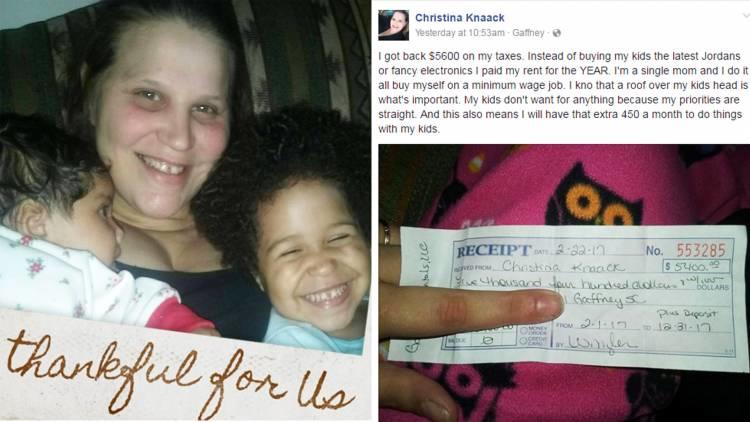 Christina Knaack, who is the single mom posting her tax refund updates, was up front about her choice of things to do with the tax refund. She said that she was managing everything at home and this gave her some leverage.