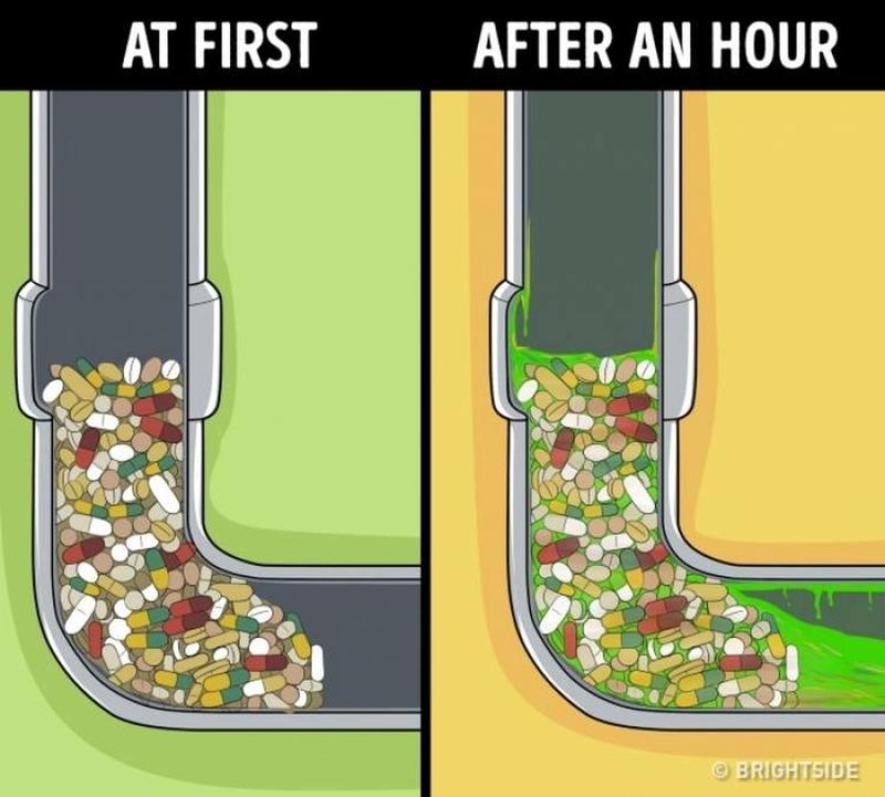 Some pills dump their pills down the drain (for reasons unknown to us) and they are of the common misconception that pills dissolve down the drain. This is false because they only dissolve when you apply force - the force of your mouth.