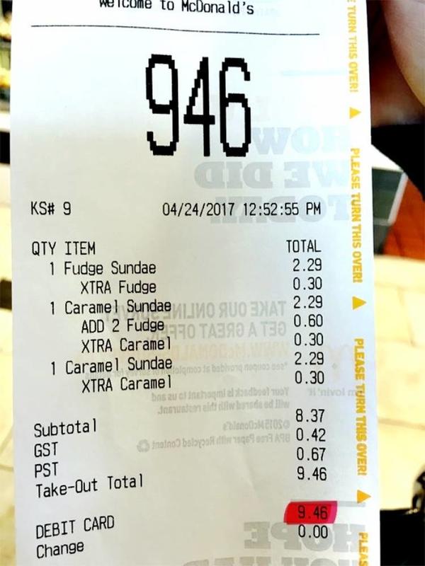 The order number this girl had for her ticket receipt was exactly the same for the amount that she incurred for her food at McDonald's. How rare is this feat and we really should be celebrating it with a bigger and better one.