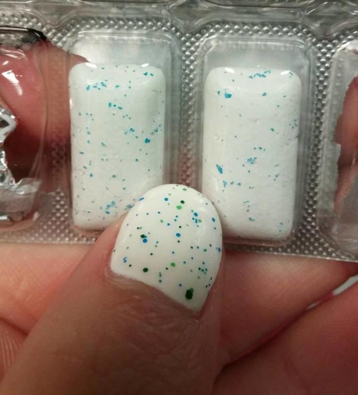 This girl was chewing on to her gum and noticed that there really wasn't any difference in her nail color and the color for the gum she was eating. She was really taken aback by this realization that she had suddenly.