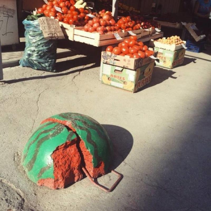 Your imagination will trick you into believing that this is a water melon. But, this isn't really a water melon and is a special item probably made out of stainless steel or aluminum. So, don't kick this melon in the night.