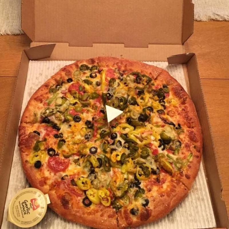 Your mind might trick you into believing that this is a video of a pizza, but this really isn't, as this is a picture. The video play icon is just the small three legged stand we have on pizzas for keeping the slices together.