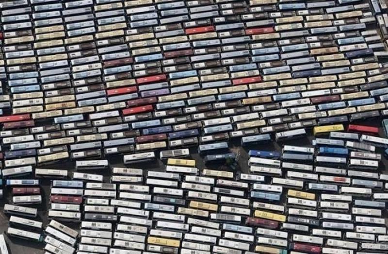 These buses transporting pilgrims in Mecca from one place to another really look like cassette tapes waiting to be plugged in to the tape player. These buses really are stacked up and we can assume the jam from up here.