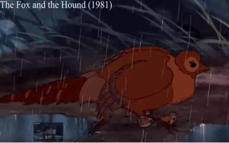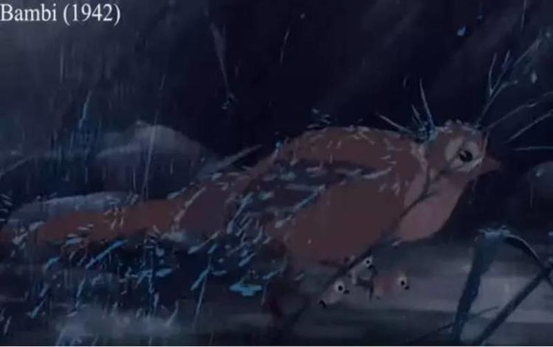 This scene of the rain hitting a bird in Bambi (the 1942 Disney classical film) was quite brief, and that's probably why Disney didn't see any harm in using the scene again in a later film project. Tricking us all!