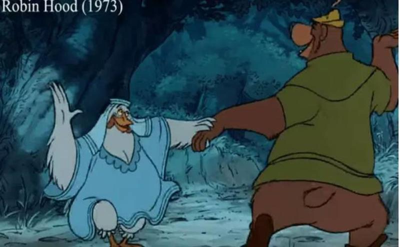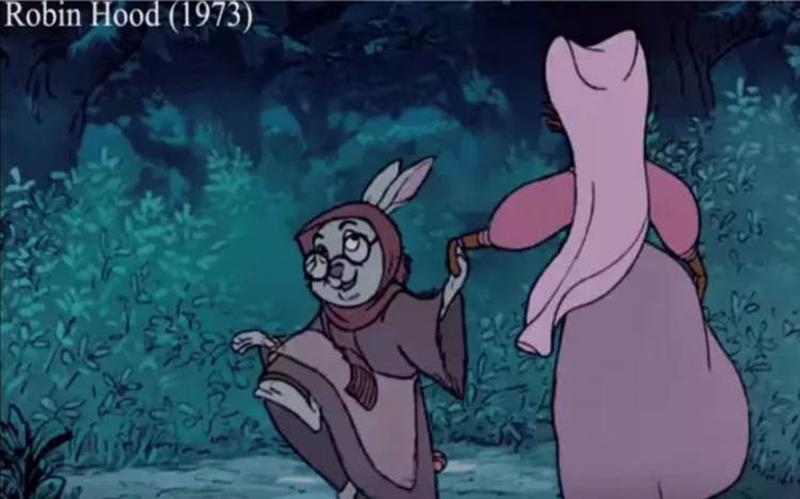 Here, the film in our example is Robin Hood (1973), which reused the scene from The jungle Book and simply replaced the characters and the backdrop to create a new scene without anyone noticing--until internet sleuths solved the mystery, that is.