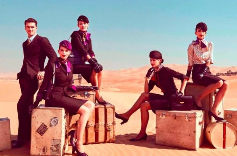 I had to Google this one since I had no idea where Etihad Airlines is from. It appears they are from the UAE, which is currently experiencing a complete air travel boom. Good for them and good for their uniforms too - they look quite stylish.
