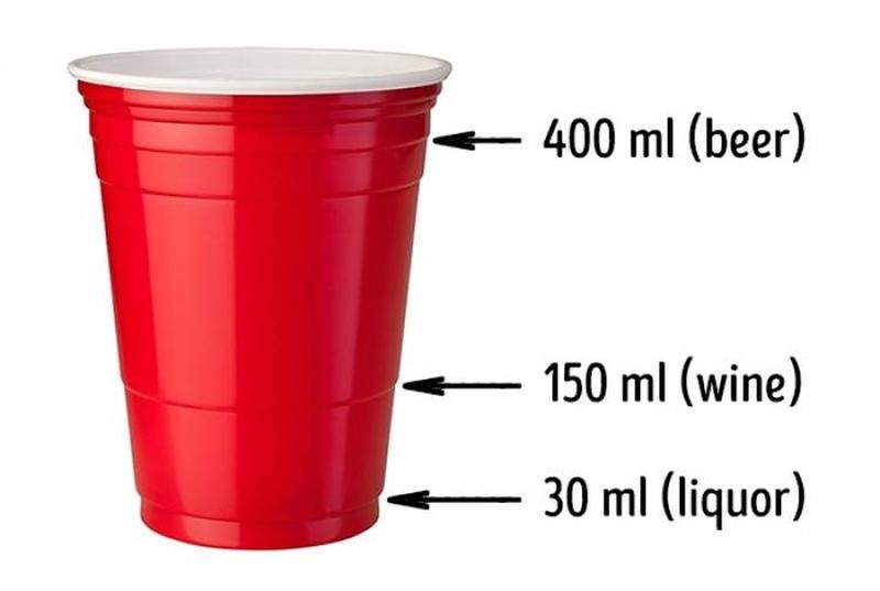 Ever wondered why those single use disposable plastic cups have clearly visible indents on their outlines? This is because they also serve as a measuring cup and prevent you from overdrinking if done right. Watch out for those indents.