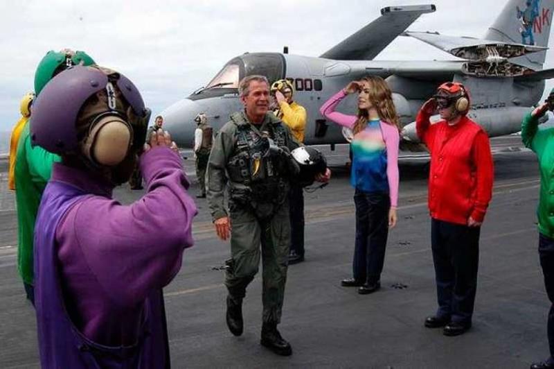 This is another that relies on the same joke as the previous image, in order to make it look like she is saluting. Here, she happens to be saluting the former president, George W. Bush. They even decided to give her a pair of pants for authenticity sake.