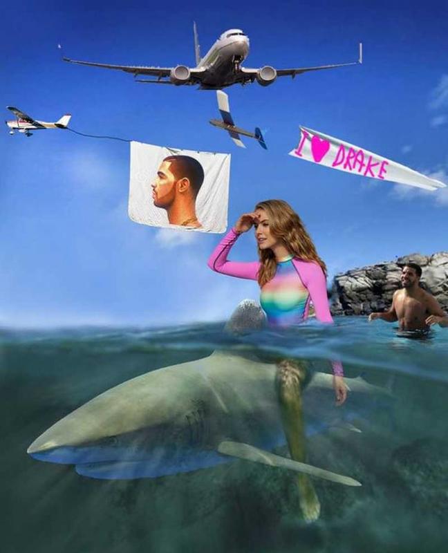 This one is similar to the one before where she is riding a dolphin, but the person who edited this one decided to take it up a notch. Never doubt how far the internet is willing to go for a joke, and this person put a reference to Drake just about everywhere they could.