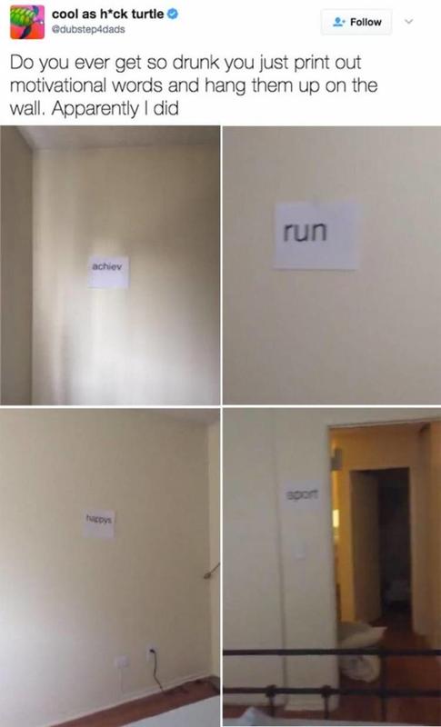 Most of us like to enjoy a drink or two every now and then. It's a great social activity and can help us relax a little bit and calm down. Then there of those of us that love a good alcohol-fuelled party and tend to rack up a drink count a little higher than one or two. In the age of mobile phones and the internet being drunk is no longer a private matter. The hilarity of drunk people is caught on video and in pictures to be spread with the world over social media. Here is a collection of some surprisingly intelligent drunk photos.