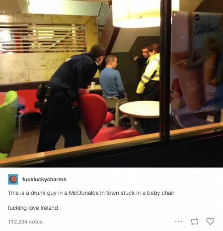 Well in this instance maybe we're using the term genius sarcastically. Never the less, it's still hilarious. Ireland has long been considered a cultural king of heavy drinking. This poor, drunk Irishman may have forgotten a few years and just thought he was younger than he really was.