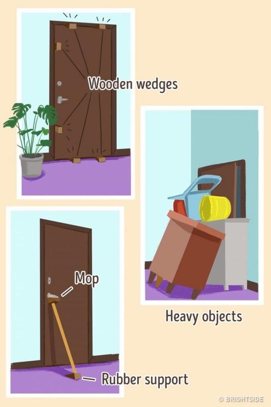 Sometime you can find yourself mixed up with the wrong crowd, and for whatever reason, they might try to break in. If that ever happens to you, try to barricade your house with various tools such as a mop, chair and even a fridge.