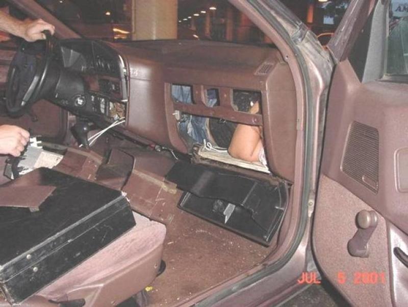 We finish the list with this picture, which is the most threatening one to explain and define. We have a lot of questions to ask related to this picture and would go one by one. Why is this person trying to hide under the dashboard of the car? How did the person get inside the dashboard of the car, since it is a constrained place with a lot of wires?