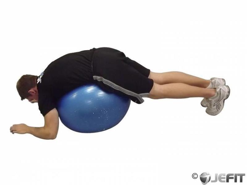 All you need is a large fitness ball to accomplish this exercise. Lay on your stomach and place both hands behind your head, now gradually lower your shoulders. Stop once you feel that you've reached full stretch and then lower back.