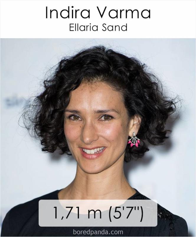 Proving my previous point about Joffrey not being tall enough (most evil characters are never tall - is it malnutrition issues?), we have Indira Varma, who plays the role of Ellaria Sand. She stands at a tall 5'7", which would be 1.71m.