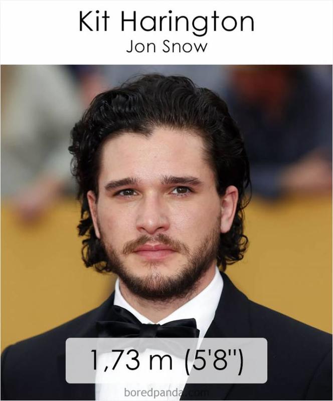 We finally have Jon Snow, the guy who can resurrect and who is also one of the best characters in the show. I hope he wins out at the end and basically kills all the bad guys. He stands at a whopping 5'8", which would 1.73m - this is almost the average male height in the world.