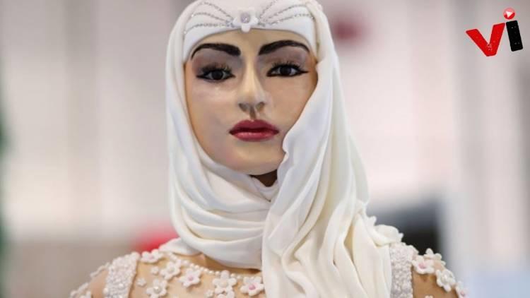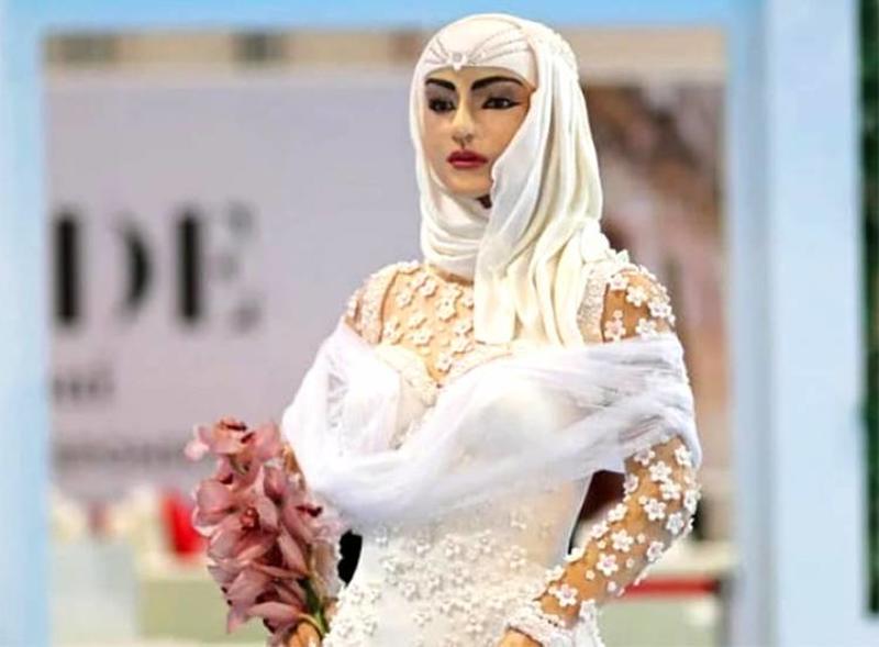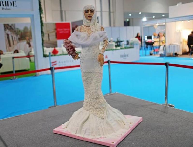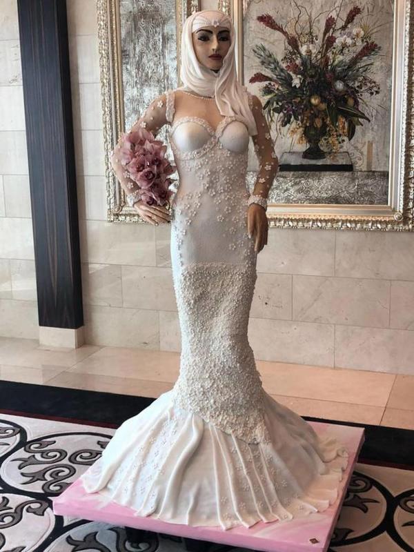 The cake was prebaked in Raffles Dubai and then turned into a life sized Arabic model. "I call her Lulwa" says the proud creator Debbie, "She is as good as a living being for me." Lulwa means 'pearls' in Arabic.