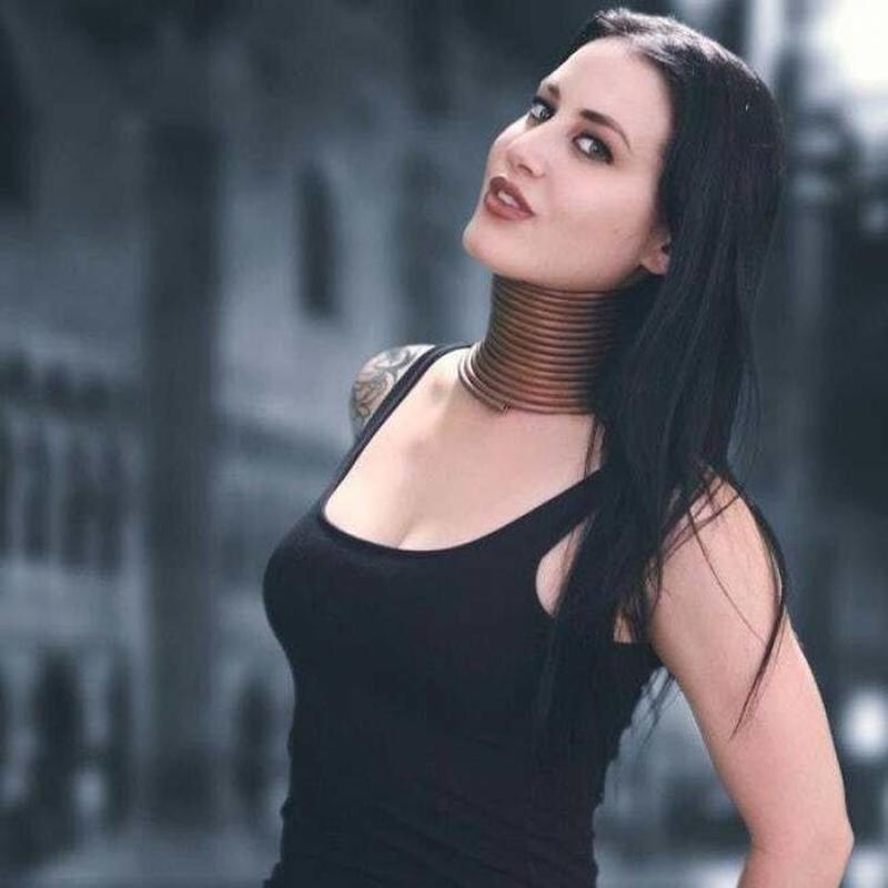 Here is the official Giraffe Girl, also known as Sydney V. Smith. She might have been Asian in a previous life, as what she did to her neck is an ancient tradition of the Kayan Lahwi tribes of Thailand and Burma - maybe she should pay them a visit one day!
