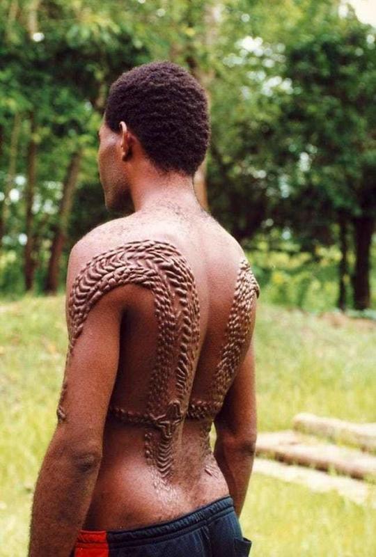 This is not a photo taken in the West, by someone who got his skin "etched-out" for fun. No, this is an actual tribe from Papua New Guinea, that have an old custom called "crocodile scarification" - they say it is as painful as it looks!