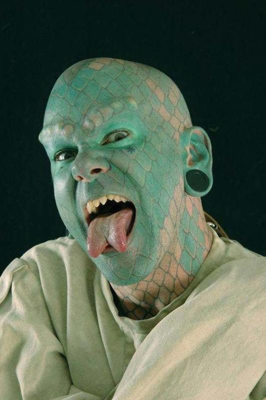 I'm just joking he ain't no captain, and he also doesn't have any superpowers, so there is no way he can join the Avengers - but that didn't stop this guy in Kentucky to dye his skin completely green, cut his tongue in half and all the various modifications you see above.