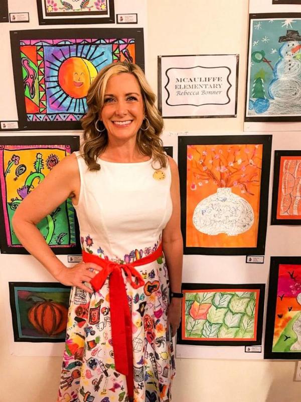 Rebecca Bonner is a teacher at McAuliffe Elementary School in Highland Village, Texas who loves her students. She loves them so much she let them do something that most teachers would get upset about - let them draw on her clothes. As a way to connect with her students, she let each one of her students draw on her skirt as part of a project last year. Not only did she let them draw on it, she actually wore the skirt to an art show.