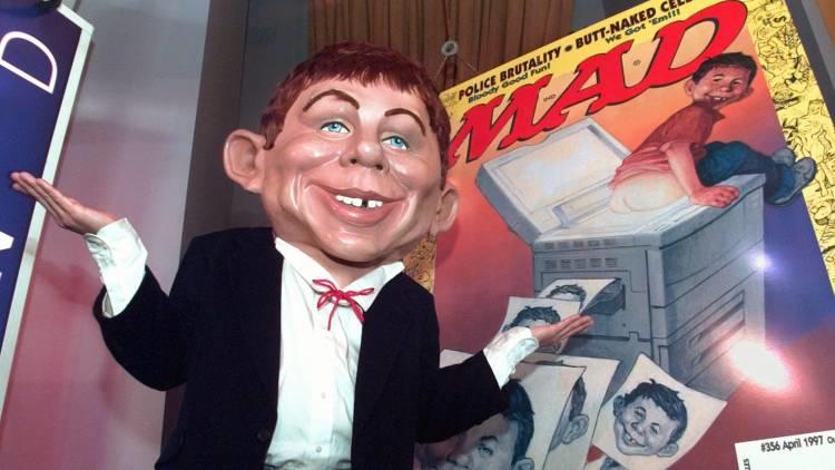 Mad Magazine is an American institution. In the comedy world it is equivalent to Saturday Night Live or National Lampoon. It is something that has existed for so long, it is hard to imagine a world where it doesn't exist at all anymore. For those who are unfamiliar with Mad Magazine, it is a comedy publication known for its irreverent parodies of pop culture and politics. Fronted by its mascot, Alfred E Neuman, the magazine has been in print for 67 years, offering laughs, as well as its patented fold-up drawings in the back. The drawings would depict one image, but when folded on pre-marked areas, it would depict another image, usually lampooning the original.