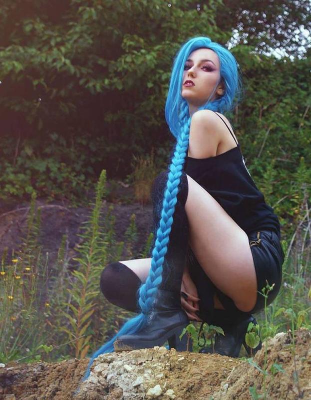 This photo shows that if you're hot enough, you can get away with being as weird as you'd like. This woman is dressed up in a creepy costume that is a cosplay of Jinx from the popular game, League of Legends!