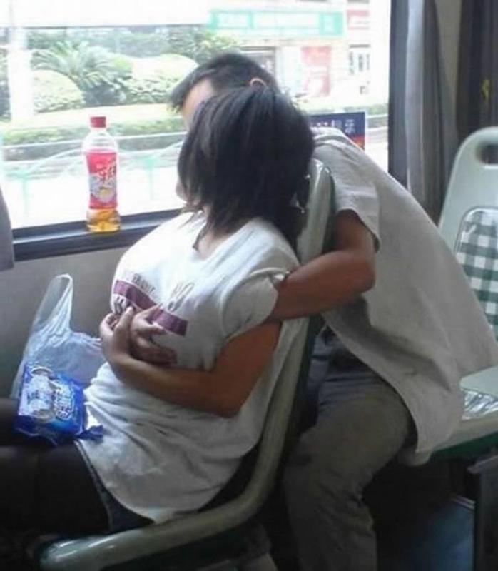 Here's a gross thing to do on public transport! These two probably think they're being sneaky but it could not be more obvious and they shouldn't be doing this in public. It's just weird, bizarre and a little bit gross.