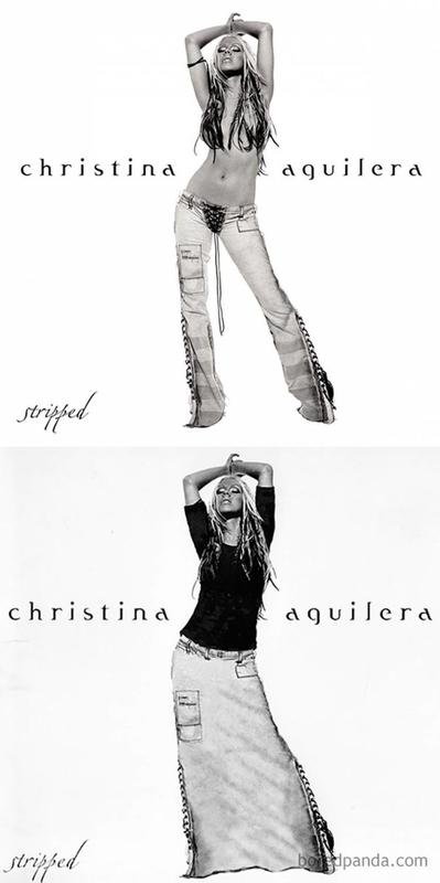 It is insanely ironic that Christina Aguilera's album, which is called stripped, involved clothing being added to her artificially. The original cover featured her stripped down, but editors had to add clothing in order to make the album available for everyone.
