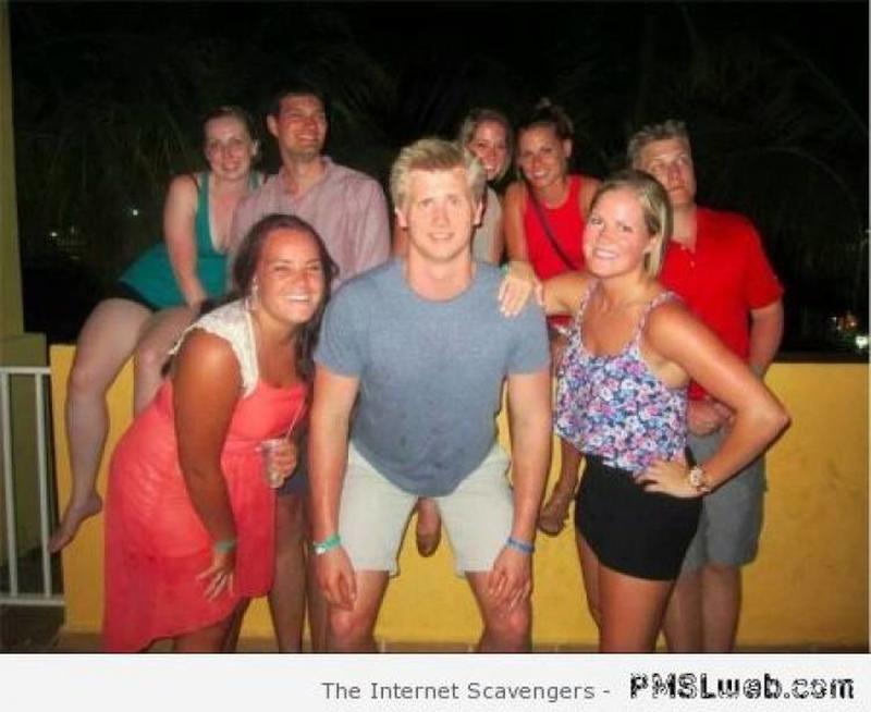 At first and second glance this photo is incredibly shocking and then intriguing. This group of friends wanted to have a photo that represented their whole crew getting together and then Mr.Big over here had to let it all hang out and steal the show...oh wait its just a foot.