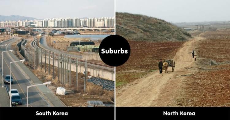 South Korea has a rising middle-class, and more and more people are moving into the suburbs, built around the wealthy cities, with developed service economies. The North is still battling food scarcity, and many people still live in rural farms.