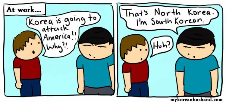 Despite South Korea is one of our closest allies, many people mistake who are the good guys, and who are the bad guys. The above illustration serves to illustrate this purpose - remember if you have a Hyundai car, that came from SOUTH Korea, not North Korea.