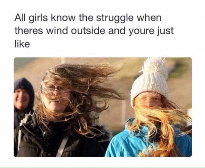 Yeah, this picture is pretty funny, I have to give it that. Everyone hates when their hairstyle gets messed up by the wind, but women have double the amount of problems, since their hair usually sticks on their lips, due to the use of lip gloss (which you have to do - it is the winder!).