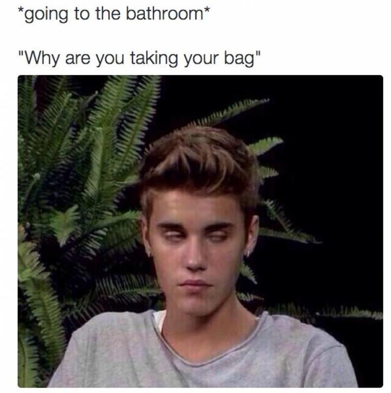 Many men find it fascinating how women can think of reasons to carry their bag EVERYWHERE. They don't understand that maybe you are having your period, and have to carry the bag to the bathroom so that you can change your pads.