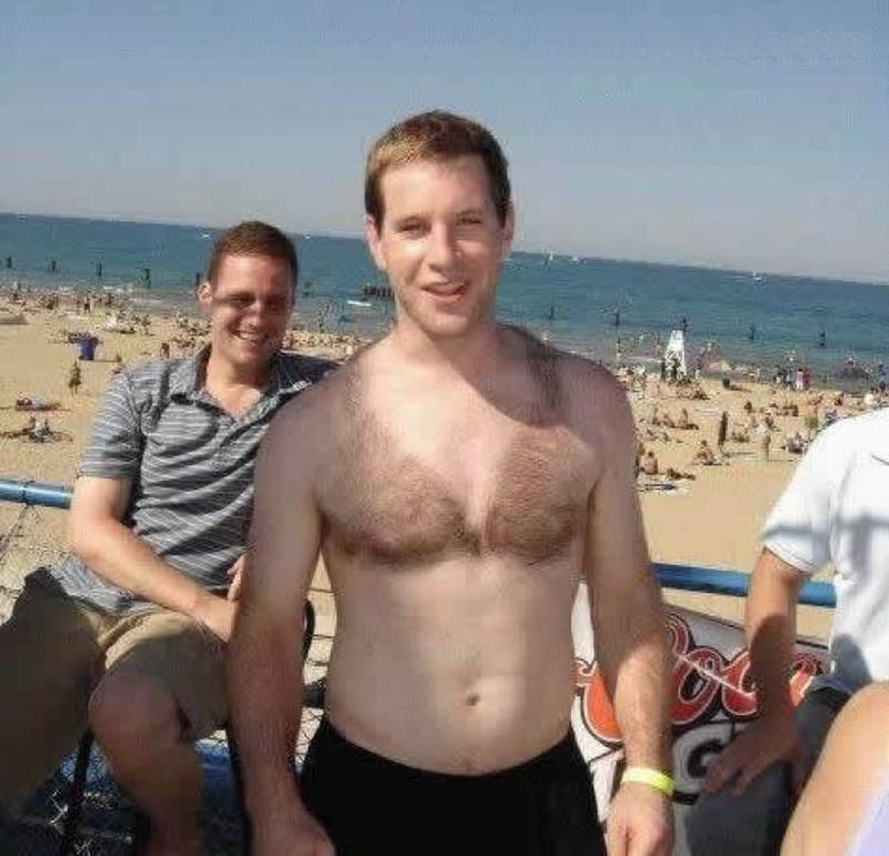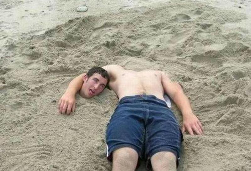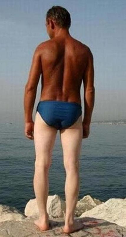 If you too, like this man, have a heavy natural jacket growing on you be careful who you show this to. Because if your friends or your kids see it you may end up finding yourself with a similar trim to this man for your day on the beach.