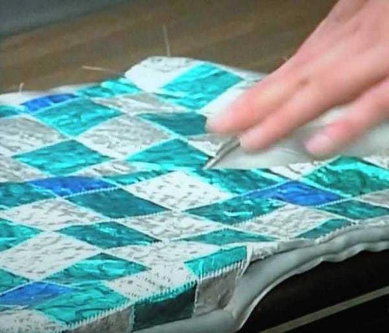 Elizabeth had done her research prior to starting the process and knew just how to tackle the task. She utilized a blend of iron interfacing, mastered quilting techniques and used a layer of vinyl to finish so that there were no wrappers hanging out.