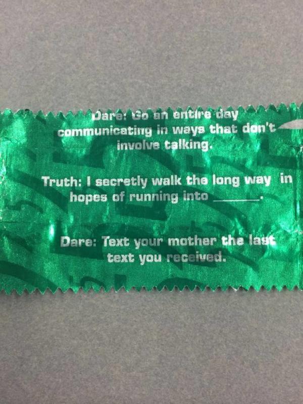 Although she said no to any future clothing made of wrappers, she did mention that a new design was out for the 5 gum and it was black. She really liked the color and you never know, she might as well try it out on her next excursion.
