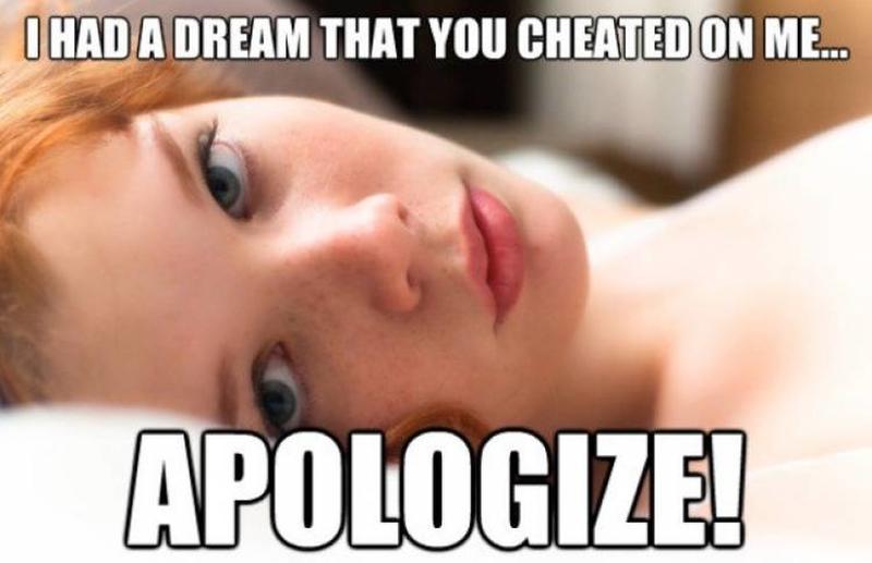 Have you ever woken up in the morning and your girlfriend is mad at you for no reason at all? It's probably because she had a dream that you did something wrong and it feels so real that now she is actually suspicious of you. Ease her mind and don't give into her dream logic.