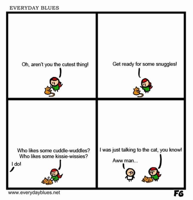 Men, there's only one thing they want. It's the only thing which lingers in their minds 24/7, except when they're filling their tummies. So when you're patting your cat and expressing your desire to snuggle with it, the guy assumes he's on the verge of getting some action.