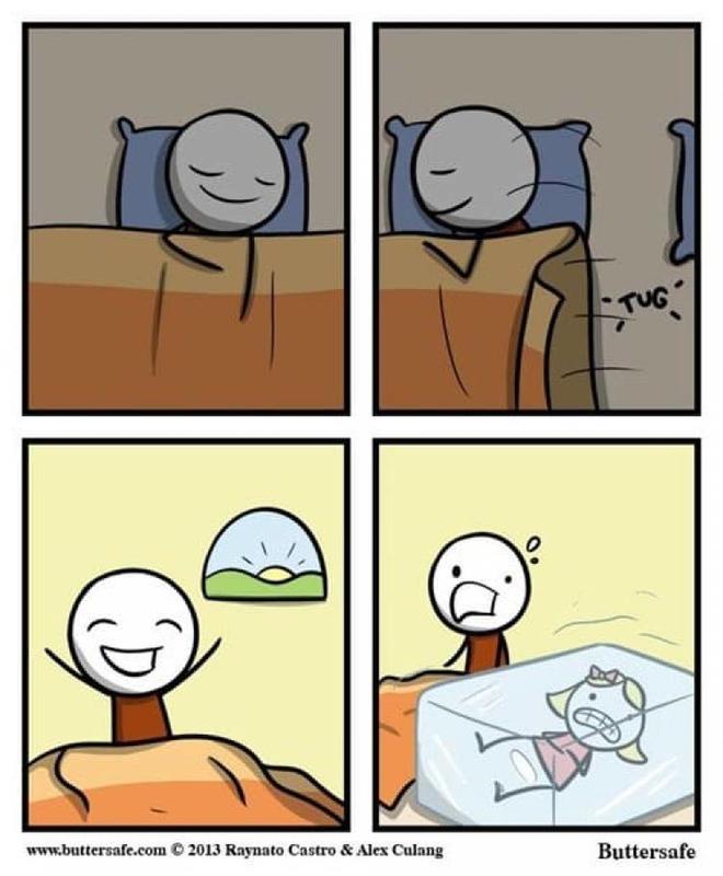 Sharing the same bed also means dividing the same blanket between each other. But that is easier said than done. Throughout the night you end up struggling for a piece of the blanket, and if you win - your partner freezes to death.