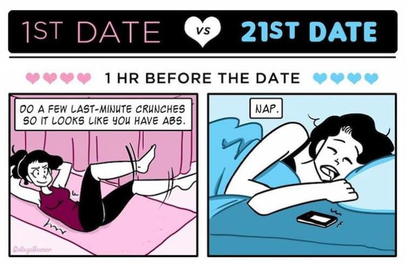 The first time you're in a relationship with someone, you go above and beyond to make sure you look your best and to be always on time. A dozen or so dates later - "*yawn* Can't get enough sleep" is the only sentiment you can share.