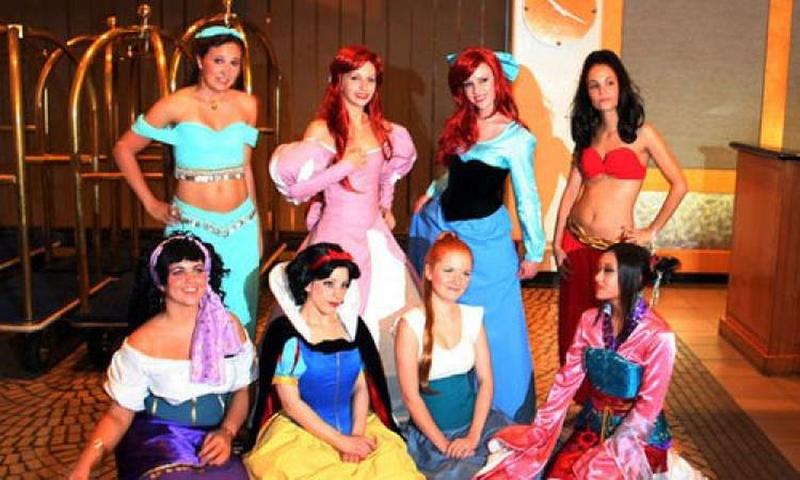 Here you see a take on a classic princess costume interpreted by two different kinds of girls. The first is keeping true to the iconic and pure princess look while the other is getting sexy with a modern edge that really ignites the fantasies in people walking by.